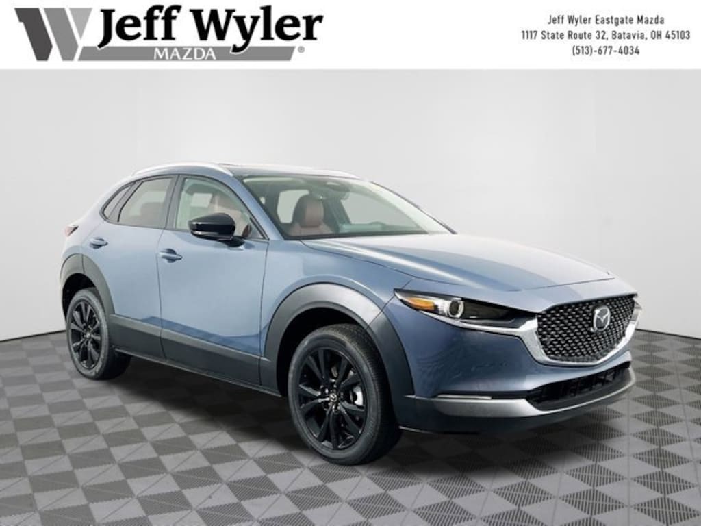 Polymetal Gray Metallic 2026 Mazda CX-30 2.5 S Carbon Edition SKYACTIV® 2.5L 4-Cylinder DOHC 16V AWD 6-Speed Automatic 24/31 City/Highway MPG Jeff Wyler Eastgate Auto Mall is proud to offer this handsome 2026 Mazda CX-30 2.5 S Carbon Edition in Polymetal Gray Metallic. Well equipped with: 12 Speakers, 4-Wheel Disc Brakes, ABS brakes, Air Conditioning, Alloy wheels, AM/FM radio, AppLink/Apple CarPlay and Android Auto, Auto High-beam Headlights, Auto-dimming Rear-View mirror, Automatic temperature control, Brake assist, Bumpers: body-color, Cargo Tray, Compass, Delay-off headlights, Driver door bin, Driver vanity mirror, Dual front impact airbags, Dual front side impact airbags, Electronic Stability Control, Emergency communication system: MAZDA CONNECT, Exterior Parking Camera Rear, Front anti-roll bar, Front Bucket Seats, Front Center Armrest, Front dual zone A/C, Front Illuminated Door Sill Trim Plates, Front reading lights, Front wheel independent suspension, Fully automatic headlights, Garage door transmitter: HomeLink, Heated door mirrors, Heated Front Bucket Seats, Heated front seats, Illuminated entry, Knee airbag, Leather Seat Trim, Leather Shift Knob, Leather steering wheel, Low tire pressure warning, MAZDA CONNECT Infotainment System, Memory seat, Occupant sensing airbag, Outside temperature display, Overhead airbag, Overhead console, Panic alarm, Passenger door bin, Passenger vanity mirror, Power door mirrors, Power driver seat, Power moonroof, Power steering, Power windows, Radio data system, Radio: AM/FM/HD Audio System, Rain sensing wipers, Rear seat center armrest, Rear side impact airbag, Rear window defroster, Rear window wiper, Remote keyless entry, Speed control, Speed-sensing steering, Split folding rear seat, Spoiler, Stainless Steel Rear Bumper Guard, Steering wheel mounted audio controls, Tachometer, Telescoping steering wheel, Tilt steering wheel, Traction control, Trip computer, Turn signal indicator mirrors, Variably intermittent wipers, and Wheels: 18 x 7J Aluminum Alloy. 24/31 City/Highway MPG
