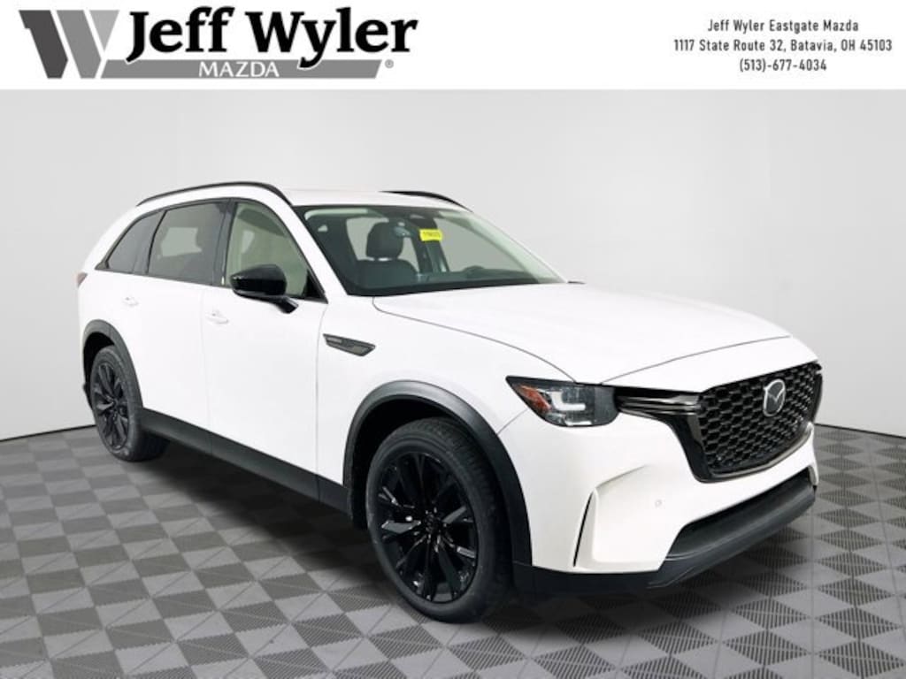 Rhodium White Premium 2026 Mazda CX-90 3.3 Turbo Premium I6 Turbo AWD 8-Speed Automatic 23/28 City/Highway MPG Jeff Wyler Eastgate Auto Mall is excited to offer this great 2026 Mazda CX-90 3.3 Turbo Premium in Rhodium White Premium. Well equipped with: 12 Speakers, 2nd-Row Captain's Chairs, 3rd row seats: bench, 4-Wheel Disc Brakes, ABS brakes, Air Conditioning, Alloy wheels, AM/FM radio: SiriusXM, Auto High-beam Headlights, Auto-dimming door mirrors, Auto-dimming Rear-View mirror, Automatic temperature control, Brake assist, Bumpers: body-color, Cargo Net, Compass, Delay-off headlights, Driver door bin, Driver vanity mirror, Dual front impact airbags, Dual front side impact airbags, E911 Automatic Emergency Notification, Electronic Stability Control, Emergency communication system: MAZDA CONNECT, Exterior Parking Camera Rear, First Aid Kit, Four wheel independent suspension, Front anti-roll bar, Front Bucket Seats, Front Center Armrest w/Storage, Front dual zone A/C, Front reading lights, Fully automatic headlights, Garage door transmitter: HomeLink, Heads-Up Display, Heated door mirrors, Heated front seats, Heated rear seats, Heated steering wheel, Heated/Ventilated Front Bucket Seats, Illuminated entry, Infotainment System Voice Command, Knee airbag, Leather Seat Trim, Leather Shift Knob, Leather steering wheel, Low tire pressure warning, Mazda Connected Services, Mazda Online Navigation, Memory seat, Navigation system: MAZDA CONNECT, Occupant sensing airbag, Outside temperature display, Overhead airbag, Overhead console, Panic alarm, Passenger door bin, Passenger vanity mirror, Power door mirrors, Power driver seat, Power Liftgate, Power moonroof, Power passenger seat, Power steering, Power windows, Radio Broadcast Data System Program Information, Radio data system, Radio: AM/FM w/HD/Bose 12-Speaker Sound System, Rain sensing wipers, Rear air conditioning, Rear anti-roll bar, Rear reading lights, Rear seat center armrest, Rear window defroster, Rear window wiper, Remote keyless entry, Rhodium White Premium Paint Charge, SMS Text Msg Audio Delivery & Reply, Speed control, Speed-sensing steering, Splash Guards, Split folding rear seat, Spoiler, Steering wheel mounted audio controls, Tachometer, Telescoping steering wheel, Tilt steering wheel, Traction control, Trip computer, Turn signal indicator mirrors, Variably intermittent wipers, Ventilated front seats, and Wheels: 21 x 9.5J Aluminum Alloy w/Black Metal Finish. 23/28 City/Highway MPG