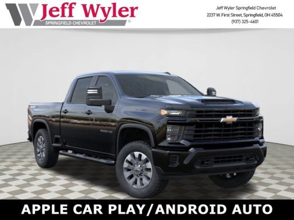 Priced below KBB Fair Purchase Price! Jeff Wyler Springfield Auto Mall is delighted to offer this good-looking 2026 Chevrolet Silverado 2500HD Custom in Black. Well equipped with: Preferred Equipment Group 1CX (170 Amp Alternator, 2-Speed Electronic Shift Transfer Case, 3.5 Diagonal Monochromatic Display DIC, 3.73 Rear Axle Ratio, Black Mirror Caps, Bluetooth® For Phone, Chevrolet Connected Access Capable, Color-Keyed Carpeting Floor Covering, Compass, Deep-Tinted Glass, Durabed Pickup Bed, Electronic Cruise Control with Set and Resume Speed, Front Rubberized Vinyl Floor Mats, HD Rear Vision Camera, Heated Vertical Trailering Mirrors, Locking Tailgate, Manual Tailgate Function with No EZ Lift, Manual Tilt-Wheel Steering Column, OnStar Services Capable, Power Door Locks, Power Front Windows with Driver Express Up/Down, Power Front Windows with Passenger Express Down, Power Rear Windows with Express Down, Push Button Start, Rear 60/40 Folding Bench Seat (folds Up), Rear Rubberized Vinyl Floor Mats, Remote Keyless Entry, SiriusXM with 360L Trial Subscription, Standard Tailgate, Wheels: 20 10-Spoke Machined Aluminum, Wi-Fi Hotspot Capable, and Wireless Phone Projection), Suspension Package, 4-Wheel Disc Brakes, 4 Round Black Assist Steps, 6 Speakers, 6-Speaker Audio System, 720 Cold-Cranking Amps Heavy-Duty Battery, ABS brakes, Air Conditioning, Alloy wheels, AM/FM radio: SiriusXM with 360L, Apple CarPlay/Android Auto, Auto High-beam Headlights, Brake assist, Cloth Seat Trim, Delay-off headlights, Driver door bin, Dual front impact airbags, Dual front side impact airbags, Electronic Stability Control, Emergency communication system: OnStar, Front 40/20/40 Split-Bench Seats with Lockable Storage, Front anti-roll bar, Front Center Armrest w/Storage, Front reading lights, Front wheel independent suspension, Fully automatic headlights, Heated door mirrors, Illuminated entry, Low tire pressure warning, Occupant sensing airbag, Outside temperature display, Overhead airbag, Overhead console, Panic alarm, Passenger door bin, Passenger vanity mirror, Power door mirrors, Power steering, Power windows, Premium audio system: Chevrolet Infotainment 3, Radio: Chevrolet Infotainment 3 System, Rear reading lights, Rear step bumper, Remote keyless entry, Speed control, Split folding rear seat, Tachometer, Tilt steering wheel, Traction control, Trip computer, Turn signal indicator mirrors, Variably intermittent wipers, and Voltmeter.