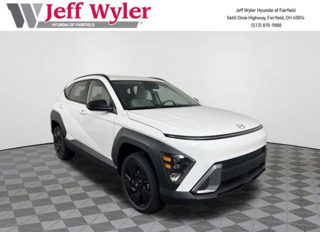 Priced below KBB Fair Purchase Price! 2026 Hyundai Kona Atlas White SEL Sport AWD CVT 2.0L I4 DOHC 16V Android Auto, Apple CarPlay, CALL NOW FOR YOUR VIP APPOINTMENT 513-870-9800, FULLY SERVICED w/RECORDS, GUARANTEED FINANCING!! NO MATTER YOUR SITUATION WE CAN GET AN APPROVAL!!, THE #1 Volume dealer in the region! Come see why for yourself Today!!, WE PAY MORE FOR YOUR TRADE!!. 26/29 City/Highway MPG Jeff Wyler Hyundai of Fairfield is proud to offer this great-looking 2026 Hyundai Kona SEL Sport in Atlas White. Well equipped with: Option Group 01, Android Auto, Apple CarPlay, CALL NOW FOR YOUR VIP APPOINTMENT 513-870-9800, FULLY SERVICED w/RECORDS, GUARANTEED FINANCING!! NO MATTER YOUR SITUATION WE CAN GET AN APPROVAL!!, THE #1 Volume dealer in the region! Come see why for yourself Today!!, WE PAY MORE FOR YOUR TRADE!!, 4-Wheel Disc Brakes, 6 Speakers, ABS brakes, Air Conditioning, Alloy wheels, AM/FM radio: SiriusXM, Apple CarPlay & Android Auto, Auto High-beam Headlights, Automatic temperature control, Brake assist, Bumpers: body-color, Cloth Seat Trim, Delay-off headlights, Driver door bin, Driver vanity mirror, Dual front impact airbags, Dual front side impact airbags, Electronic Stability Control, Emergency communication system: None, Exterior Parking Camera Rear, Four wheel independent suspension, Front anti-roll bar, Front Bucket Seats, Front Center Armrest, Front dual zone A/C, Front reading lights, Fully automatic headlights, Heated door mirrors, Heated Front Bucket Seats, Heated front seats, Illuminated entry, Leather steering wheel, Low tire pressure warning, Occupant sensing airbag, Outside temperature display, Overhead airbag, Panic alarm, Passenger door bin, Passenger vanity mirror, Power door mirrors, Power steering, Power windows, Radio: AM/FM/SiriusXM/HD Audio System, Rear anti-roll bar, Rear seat center armrest, Rear window defroster, Rear window wiper, Remote keyless entry, Security system, Speed control, Speed-sensing steering, Split folding rear seat, Spoiler, Steering wheel mounted audio controls, Tachometer, Telescoping steering wheel, Tilt steering wheel, Traction control, Trip computer, Variably intermittent wipers, and Wheels: 18" x 7.0J Black Alloy. Price includes: $1750 - Hyundai HMF Dealer Choice : $1750 discount and 5.49% APR for 24 months. $44.09 per $1000 financed. Available to well qualified buyers who finance through Hyundai Motor Finance. H704. Exp. 01/02/2026 $400 - College Graduate Program. Exp. 01/02/2026 $500 - Military Program. Exp. 01/02/2026 $750 - Sales Event Cash. Exp. 01/02/2026