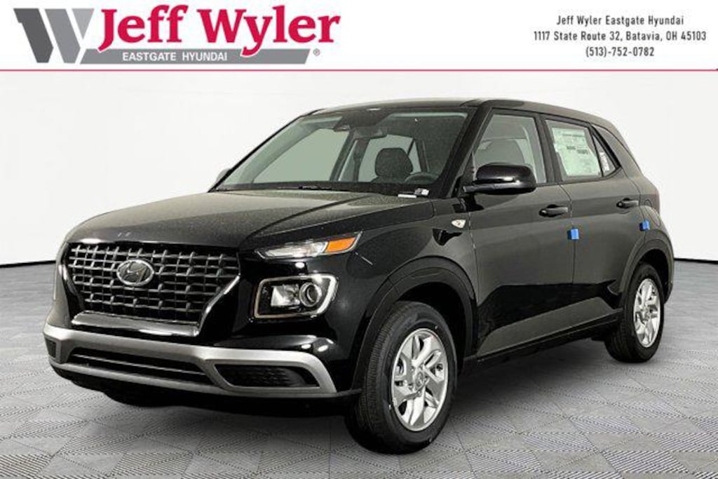 Onyx Black 2026 Hyundai Venue SE I4 FWD CVT 29/33 City/Highway MPG Jeff Wyler Eastgate Auto Mall is very proud to offer this great 2026 Hyundai Venue SE in Onyx Black. Well equipped with: Option Group 01, 6 Speakers, ABS brakes, Air Conditioning, Alloy wheels, AM/FM radio, Apple CarPlay & Android Auto, Auto High-beam Headlights, Brake assist, Bumpers: body-color, Cargo Net, Cargo Tray, Carpeted Floor Mats, Cloth Seat Trim, Delay-off headlights, Driver door bin, Driver vanity mirror, Dual front impact airbags, Dual front side impact airbags, Electronic Stability Control, First Aid Kit, Front anti-roll bar, Front Bucket Seats, Front Center Armrest, Front reading lights, Front wheel independent suspension, Fully automatic headlights, Illuminated entry, Low tire pressure warning, Occupant sensing airbag, Outside temperature display, Overhead airbag, Overhead console, Panic alarm, Passenger door bin, Passenger vanity mirror, Power door mirrors, Power steering, Power windows, Radio: AM/FM/HD Display Audio, Rear Bumper Applique, Rear Seat Cup Holder, Rear window defroster, Rear window wiper, Remote keyless entry, Security system, Speed control, Speed-sensing steering, Split folding rear seat, Spoiler, Steering wheel mounted audio controls, Tachometer, Telescoping steering wheel, Tilt steering wheel, Traction control, Trip computer, Variably intermittent wipers, and Wheels: 6.0J x 15" Alloy. 29/33 City/Highway MPG