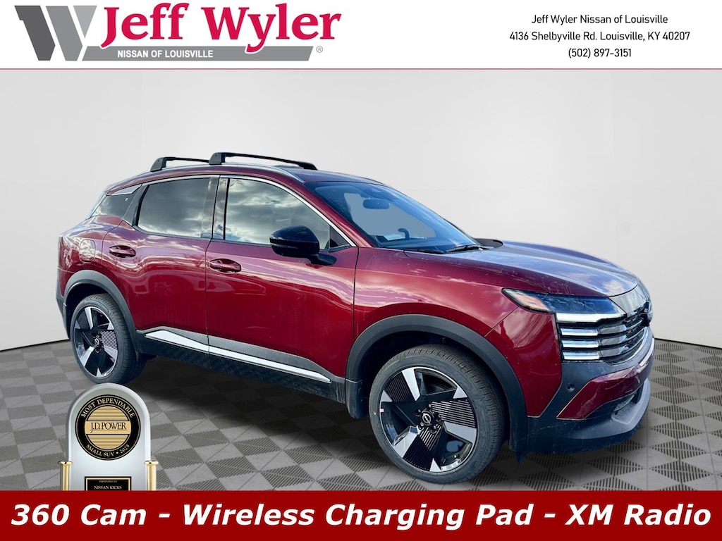 Jeff Wyler Nissan of Louisville is honored to offer this good-looking 2026 Nissan Kicks SR in Scarlet Ember Tintcoat. Well equipped with: Cold Weather Package (Heated Front Seats, Heated Mirrors, and Rear Floor Heater Ducts), 17" Alloy Wheels, 19" Alloy Wheels, 4-Wheel Disc Brakes, 6 Speakers, ABS brakes, Air Conditioning, Alloy wheels, AM/FM radio, Auto High-beam Headlights, Automatic temperature control, Brake assist, Bumpers: body-color, Carpeted Floor Mats, Crossbars, Delay-off headlights, Driver door bin, Driver vanity mirror, Dual front impact airbags, Dual front side impact airbags, Electronic Stability Control, Emergency communication system: NissanConnect Services, Exterior Parking Camera Rear, Four wheel independent suspension, Front anti-roll bar, Front Bucket Seats, Front Center Armrest, Front reading lights, Fully automatic headlights, Garage door transmitter: myQ Connected Garage, Illuminated entry, Knee airbag, Leather Shift Knob, Leather steering wheel, Low tire pressure warning, NissanConnect featuring Apple CarPlay and Android Auto, Occupant sensing airbag, Outside temperature display, Overhead airbag, Overhead console, Panic alarm, Passenger door bin, Passenger vanity mirror, Power door mirrors, Power steering, Power windows, Premium Paint, Radio data system, Radio: AM/FM/SiriusXM Audio System, Rear anti-roll bar, Rear reading lights, Rear seat center armrest, Rear side impact airbag, Rear window defroster, Rear window wiper, Remote keyless entry, Security system, Speed control, Speed-sensing steering, Splash Guards, Split folding rear seat, Spoiler, Sport Leatherette w/Cloth Insert Seat Trim, Sport steering wheel, Steering wheel mounted audio controls, Tachometer, Telescoping steering wheel, Tilt steering wheel, Traction control, Trip computer, Turn signal indicator mirrors, and Variably intermittent wipers.2026 Nissan Kicks SR Scarlet Ember Tintcoat Wyler Family First Package Includes: NanoCure Appearance Protection: Exterior & Interior Chemical Sealant Applied to Protect Against Environmental Hazards (7 Year Warranty Coverage). Pulse- Rear end Collision Avoidance System Theft Deterrent Strategy gives you 5 Years of Coverage against vehicle Theft, Offering up to a $5,000 benefit. Customer's May Not Qualify for All Rebates. Prices Do Not Include Tax, License. $1000 - Nissan Customer Cash. Exp. 03/02/2026